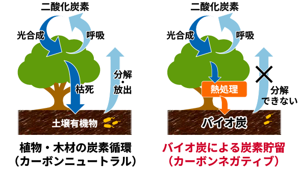 *1: 岸本(莫) 文紅「地球温暖化防止の土壌炭素隔離機能から見たバイオ炭」木質炭化学会誌 2018 年 15 巻 1 号 p. 2-7[参照元へ戻る]