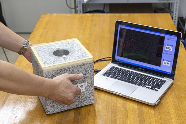 「これまでにひずみ計の実用について問い合わせがあったのは、大深度地下トンネルやダムといった巨大構造物などの案件です。事前調査や建設後のモニタリングには高精度な観測計器が必要になります。ほかにも原子力関連施設などはより高い安全性が求められるため、高精度なひずみ観測の需要があるのではないかと考えています。いつになるか現時点では見通せませんが、そういった施設が実際に日本で建設されるときに役立てるようにしたいと思っています」と、板場は言う。