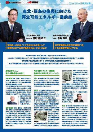北芝電機株式会社(福島県福島市)において、北芝電機株式会社 取締役社長 管野義知氏と弊所 理事長 中鉢良治との間でトップ対談が行われました。東北・福島の復興へかける思い、再生可能エネルギーに関する技術のシーズとニーズに関する情報交換、地元企業と福島再生可能エネルギー研究所との連携強化、などについて話し合われました。