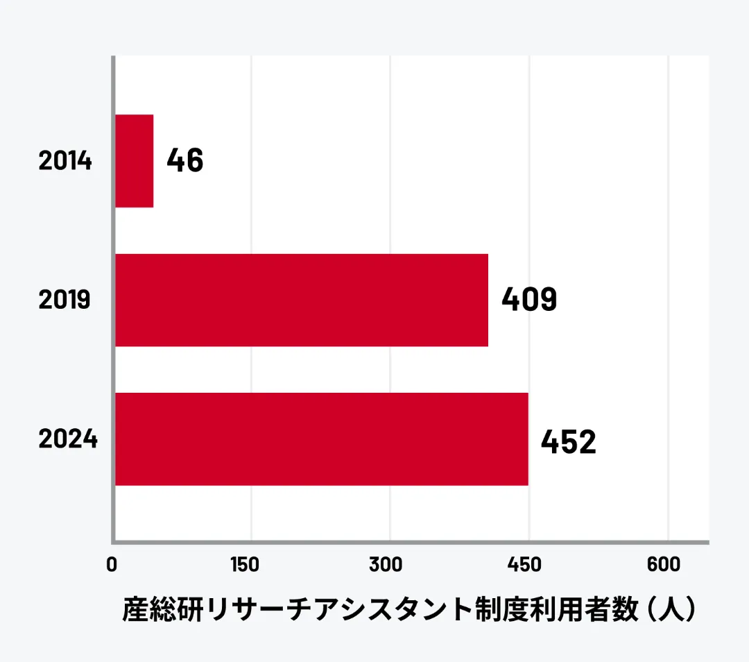 - ※ 産総研リサーチアシスタント制度:大学院生が契約職員として研究開発プロジェクトに参画し、その研究成果を学位論文に活用できる制度。若手研究者の育成と実践的な研究経験の提供を目的とする。